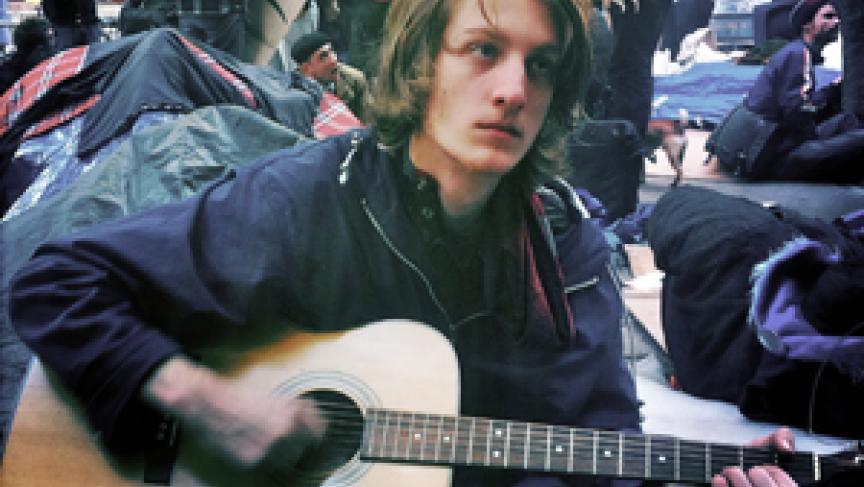 Joe Vanpotic, a 22-year-old from New Jersey, on his 30th day sleeping at New York City’s Zuccotti Park (Photo: Monica Campbell)