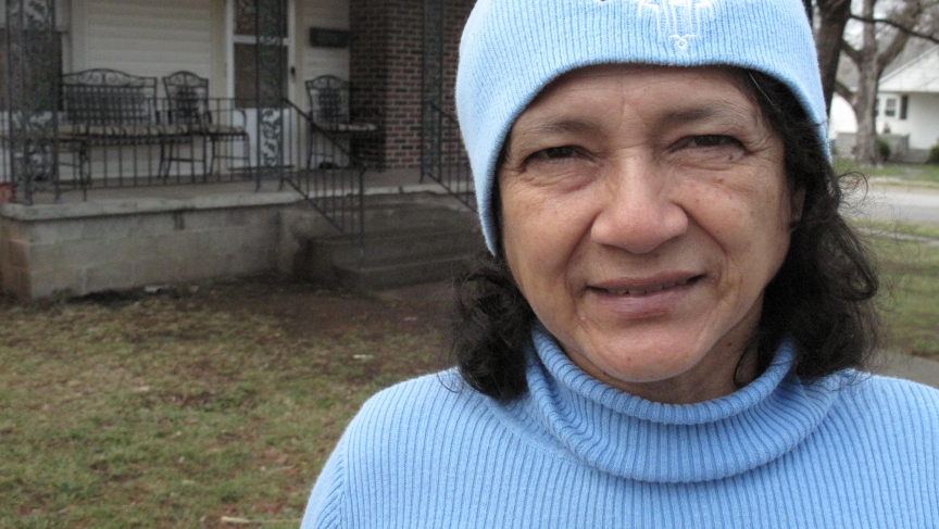 Irma Brown, from Guatemala, hacks at chicken carcasses in freezing temperatures at a Tyson Foods plant in Missouri. The factory is hiring, but immigrants are filling the lines-not locals. (Photo: Anna Boiko-Weyrauch)