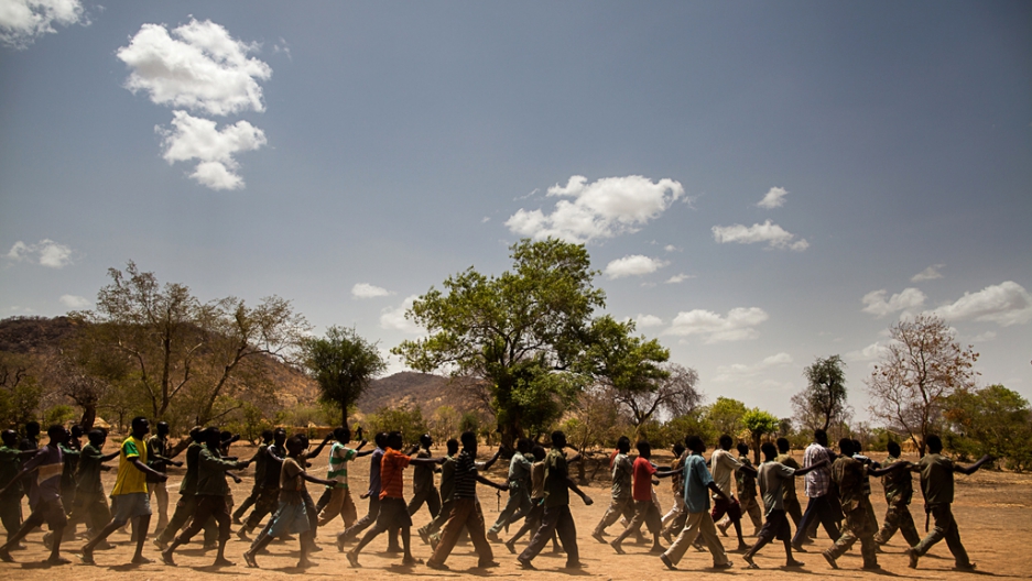On a stretch of wooded savannah encircled by a natural amphitheater of hills, new recruits to the rebel army clutch sticks instead of guns as they practice drills. Among the spirited newcomers is 23-year-old Osman Hussein. “I am fighting for the rights of the Nuba people,” he says. “I am not afraid. Even if I die it will be fighting for my people and my land.”