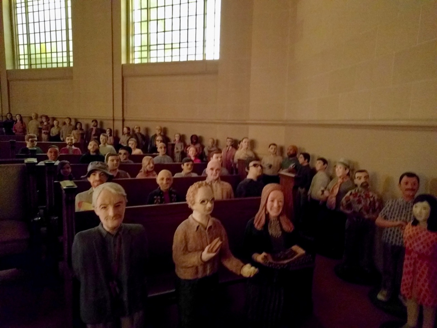 Internet Archive staff, represented as statues, in its headquarters in a former church in San Francisco